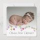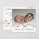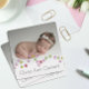 Adorable photo new baby card with a string of colored hearts. Same hearts on back.