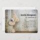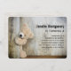 A birthday invitation with a darling photograph of a cute stuffed bear, standing by a rustic wooden wall / backdrop.