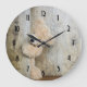 Cute Stuffed Bear Rustic Wooden Backdrop Large Clock