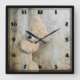 Cute Stuffed Bear Rustic Wooden Backdrop Square Wall Clock