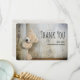 Flat thank You card with a darling photograph of a cute stuffed bear, standing by a rustic wooden wall / backdrop.