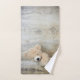 Towel set with a darling photograph of a cute stuffed bear, standing by a rustic wooden wall / backdrop.