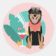 Cute Summer Dog With Sunglasses Classic Round Sticker
