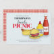 Whimsical hamburger, hotdogs, ketchup, and mustard. A fun picnic, barbeque, or cookout whimsical invitation. This a great invitation for family reunions, birthday parties, and any outdoor parties. With a cute and fun design with a gingham red tablecloth pattern.