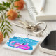 Cute summer pool party keychain. Modern fun watercolor design for the summer. Pink flamingo, beach ball, pool ring design with white typography.