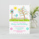 Cute Summer Tree Flowers Birds Birthday Party Invitation