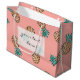 Summer and trendy design representing faux gold and turquoise pineapple pattern on a peach pink background.