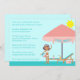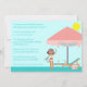 This 5x7 pool party invitation has a cute pool theme. There is an oversized umbrella with a lounge chair, a radio, and a girl holding a beach ball. You can easily customise this with your own party information.