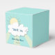Cute baby shower favour box with a theme for a little ray of sunshine baby shower. Modern illustration in yellow and blue colours for your gender neutral or boy baby shower treats. Illustrated and designed by Patricia Alvarez.