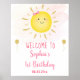 Welcome your party guests with an adorable personalised sign. Frame the sign and display it on a table near the entrance or mount the poster on foam and display it outside on an easel. The design features a sweet sunshine with a pink watercolor background and faux gold foil accents.