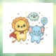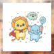 An adorable nursery illustration featuring a brave little lion in a red superhero cape and a sweet blue elephant holding a star balloon. This cheerful and minimalist cartoon design on a clean white background is perfect for kids' bedroom decor, baby shower gifts, and nursery accessories.