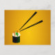 Cute Sushi Roll In Corner With Chopsticks Postcard
