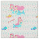 A lovely mythical mermaid themed novelty fabric print with pretty mermaids swimming with fish in bubbly waves of water. A fun and cute nautical design; ideal for crafts and sewing projects for kids.