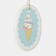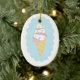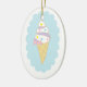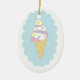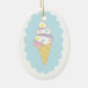 Cute Swirl Ice Cream Cone oval ornament. Customisable ornament has a cute pastel swirl ice cream cone with hearts, stars, pink bow, on a light blue scalloped oval shape that has mini white polka dots.