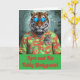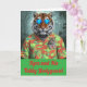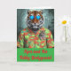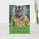 A cute funny cat greeting card featuring a tiger in Hawaiian shirt and sunglasses with a grey tabby in his shirt pocket.