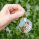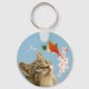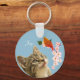 Cute Tabby Cat, Flowers and Red Little Bird Key Ring