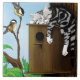 High in the branches, a silver tabby kitten has claimed the cosiest perch in the forest. Curled peacefully atop a rustic wooden birdhouse, one paw dangling in complete trust, this sleepy little dreamer rests while two curious songbirds watch from nearby twigs. The gentle woodland setting, soft leaves, and warm wood tones create a playful yet serene moment where feline and feather share the same tree. Perfect for cat lovers, bird enthusiasts, and anyone who adores charming nature scenes, this illustration brings warmth and quiet whimsy.