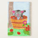 Stay organised with this cute planner with a mischievous grey and black tabby cat hiding in an apple basket . Personalise it with your name and year .