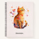 Spiral notebook with an adorable watercolor illustration. An orange tabby cat looking friendly and happy with hearts swirling around.