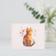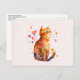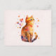Postcard with an adorable watercolor illustration. An orange tabby cat looking friendly and happy with hearts swirling around.