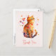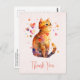 Thank you postcard with an adorable watercolor illustration. An orange tabby cat looking friendly and happy with hearts swirling around.