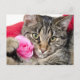 Cute Tabby Cat With Rose Postcard