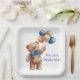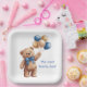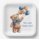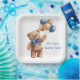 Cute Tan Teddy Bear with Balloons Boy Baby Shower Paper Plate