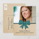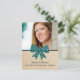 Sweet and charming Cute Bow Graduation Postcard featuring a whimsical polka dot turquoise bow and faux paper texture background. Perfect for announcing your graduate news and inviting friends and family to celebrate the accomplishment. Easy to customise, simply add a photo and your party details in the text fields provided.