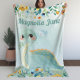 Cute Teal Dinosaur Kids Blanket with Blush Flowers