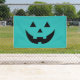 Cute teal and black jack o lantern carved pumpkin face spooky scary funny modern Halloween Banner. Halloween decorations.