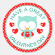Cute Teal Owl and Hearts Valentine's Day Classic Round Sticker