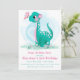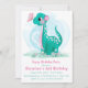 Cute Teal Pink Dinosaur 2nd Birthday Invitations
