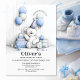 Make your little one’s first birthday truly unforgettable with this adorable party invitation, featuring a cheerful teddy bear in a birthday hat, sitting beside a blue birthday cake and surrounded by party balloons. Perfect for inviting friends and loved ones to join in the joy of your baby’s special day, this charming design sets the tone for a sweet and memorable celebration. A variety of paper types and corner styles are available for your unique invitations, along with the option to download if you prefer a digital format.