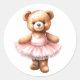 Cute teddy bear ballerina dancing ballet classic round sticker