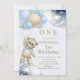 Cute Teddy Bear Balloon Abstract Blue Gold Invitation