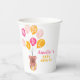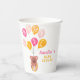 Cute Teddy Bear Balloon Baby Girl Baby Shower Paper Cups. Cute teddy bear with pink, and yellow balloons and text Baby Girl. Baby shower cups for a baby girl baby shower.