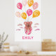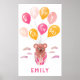 Cute Teddy Bear Balloons Girl Birthday Party Poster