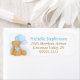 Cute teddy bear with a blue bow and a blue heart balloon bouquet. Utilise these return address labels for baby boy shower invitations, birth announcements, baby thank-you cards and birthday party invitations. The text font style, colour, size and placement can be changed by clicking the CUSTOMIZE FURTHER tab in the PERSONALIZE section.