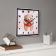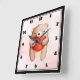 A clock with a cute watercolor illustration. A brown teddy bear carrying a big red heart.