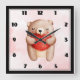 Cute Teddy Bear Carrying a Red Heart Square Wall Clock