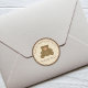 A cute grizzly teddy bear cub baby first birthday party favour sticker. Background is beige and white polka dots pattern.
