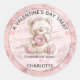 The circular layout is accented with playful hearts and elegant typography, making it perfect for Valentine’s Day envelope seals, classroom valentines, party favors, gift packaging, and treat bags. Personalized text adds a special finishing touch, making this sticker ideal for kids, teachers, families, and anyone who loves sharing sweet Valentine cheer. Cute, timeless, and full of charm, this teddy bear Valentine design is a delightful way to spread love and smiles.