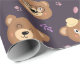 Cute Teddy Bear Face Pattern Autumn | Purple Wrapping Paper