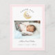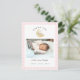 Cute watercolor Teddy bear baby girl Birth announcement postcard with photo and Birth stats with pink and white gingham border.