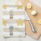 Soft neutral teddy bear pattern kitchen towel with hot air balloons and stars in warm beige tones. Calm, dreamy aesthetic with a gentle nursery feel. Ideal for baby boys, baby girls, new parents, and minimalist nursery lovers.