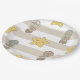 Soft neutral teddy bear pattern paper plate with hot air balloons and stars in warm beige tones. Calm, dreamy aesthetic with a gentle nursery feel. Ideal for baby boys, baby girls, new parents, and minimalist nursery lovers.
