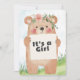 Celebrate in style with this adorable baby shower invitation featuring a cute bear illustration holding a sign that says “It’s a Girl.” The reverse side includes all event details with a soft colourful green and blue background and playful bear-themed heading. Perfect for woodland or animal-themed baby showers!