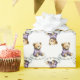 Adorable teddy bear gift wrap featuring a cute bear wearing purple pajamas sitting on a fluffy cloud. This design is perfect for baby showers, birthdays, nursery gifts, and children’s celebrations. The soft, whimsical illustration style creates a cozy and loving feel, making every present extra special. AI image generated by IveyCottage.