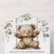 Cute Teddy Bear on a Swing Eucalyptus Baby Shower All In One Invitation