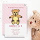 Cute Teddy Bear Pink Polka Dot Girl Birthday Invitation